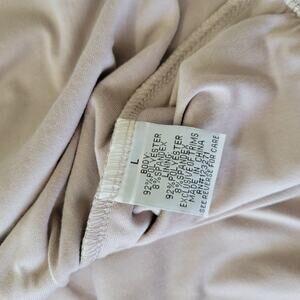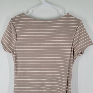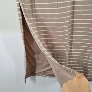 Faded Rose Midi Dress Womens Large Tan White Strip Side Slit Classic Bodycon