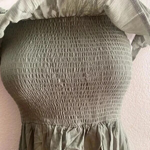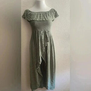 🆕Faded Rose Olive Off Shoulder Asymmetrical Dress M🆕
