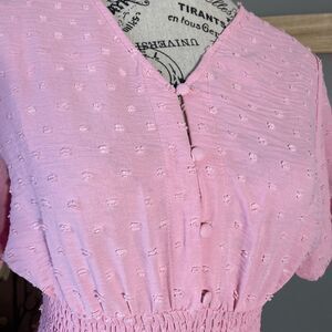 Faded Rose Pink Mini Dress Elastic Waist Short Sleeves Women Small Cottagecore