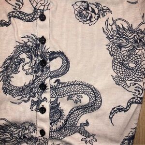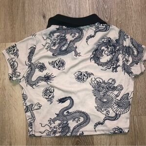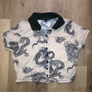 Faded Rose Women’s Black and Tan Dragon Print Crop Top | Size Small