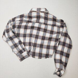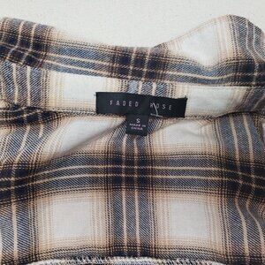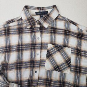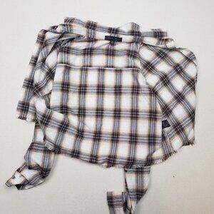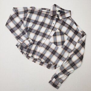 Faded Rose Women's Frayed Cropped Plaid Flannel Tan/Brown/Gold Shirt Sz S NEW!!!