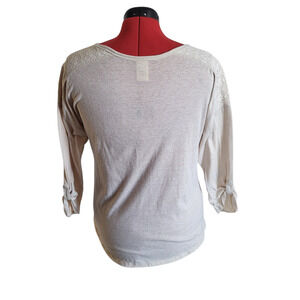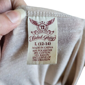This Faded Glory beige raglan sleeve top in size large (12-14) is a cozy, casual piece perfect for everyday wear. The raglan sleeves provide a relaxed, comfortable fit and the lace detailing makes it a good option to dress up. It is also a great option for layering or pairing with jeans for a laid-back look.