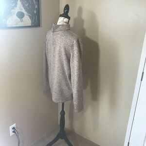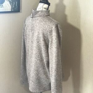 Faded glory brown size medium long sleeve hi neck brown shirt half zipper man’s heart percent polyester 28 inch length 26 inch sleeves 22 inches pit to pit F31
