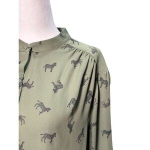 Faden Glory Womens L Shirt Green Zebra Print Button-Up Long Sleeve Blouse