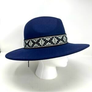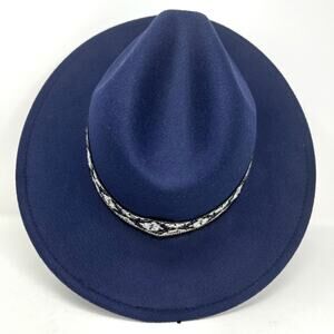 Fadivo Felted Style Fedora Buckaroo Navy Blue Hat - Southwestern Hat Band