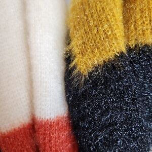 Fadivo New York black, white, gold and orange, color block, warm scarf with a little sparkle. 17" × 72"