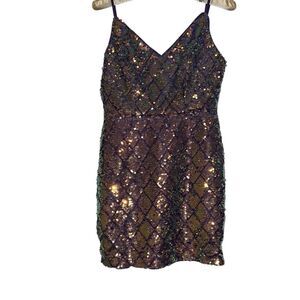 Faeriesty Purple Spaghetti Strap Sequin Bodycon Party Mini Dress Ladies Small