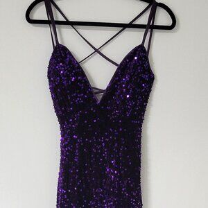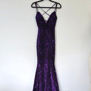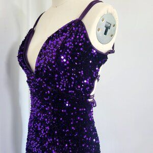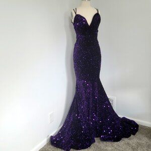 Faeriesty Purple Velvet and Sequin Mermaid Evening Gown Size XS V-Neck Formal