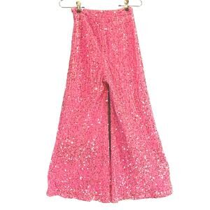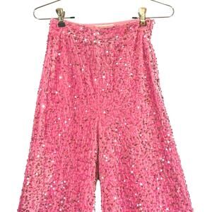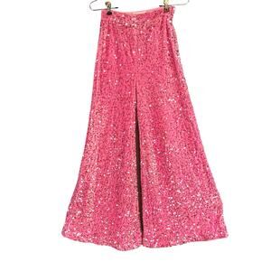 Faeriesty Retro Pink Sequin Lined Velour Wide Leg Bell Bottom Pants XS