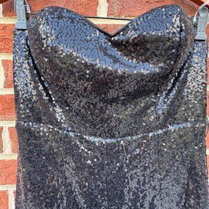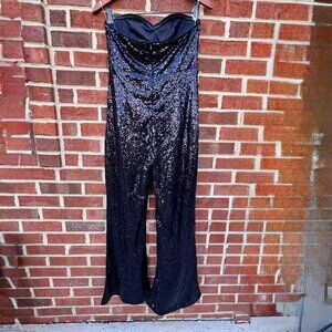 Faeriesty Sequin Jumpsuit Large Black Strapless Sweetheart Glam Special Occasion