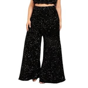 Faeriesty Wide Leg Sequin Pants Velour Black Lined Plus Size 4XL