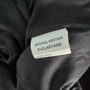 95% polyester 5% spandex – has some stretch