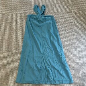 Faherty 100% Organic Cotton Teal Blue Cross Neck Midi Dress, size M
