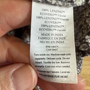 The Faherty Amira Top is a women's navy blouse adorned with a ditzy floral pattern, perfect for a bohemian or peasant look. Made from viscose material, this lightweight and breathable top features short sleeves, a V-neckline, and a pullover closure for easy wear. Ideal for travel, casual outings, or workwear, this top is machine washable and in a size L, making it a versatile addition to any wardrobe. The colorful theme and regular fit make it a stylish choice for all seasons.
