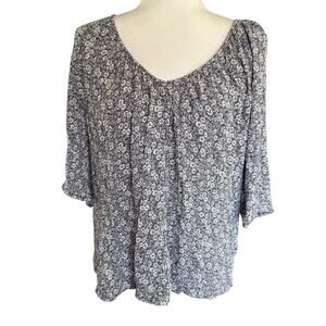 Faherty Amira Top Womens Navy Ditzy Floral M Bohemian Boho Peasant Granolagirl