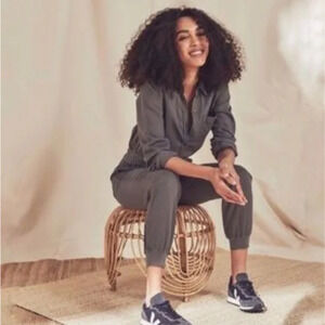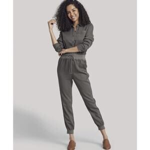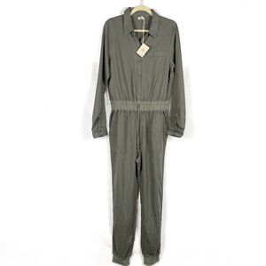 FAHERTY Arlie Day Jumpsuit in Surplus Green Gray Tencel Linen Blend Sz M Women.