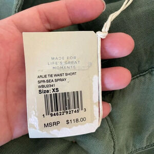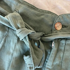 Faherty shorts in the perfect safe green. Shorts have a high waist with removable sash. Soft, lightweight, and perfect for summer.