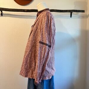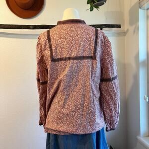 Faherty Aurora Pink Floral Organic Cotton Boho Indie Long Sleeve Blouse Size Large