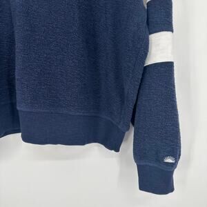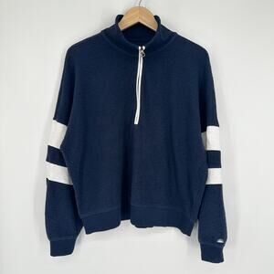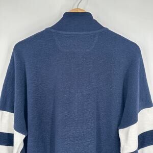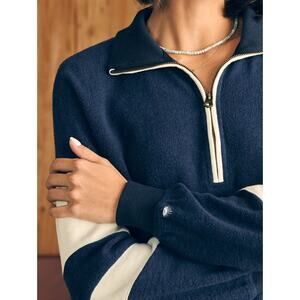 Faherty Beach Fleece Quarter Zip Sweatshirt Striped Jacket Navy Blue White