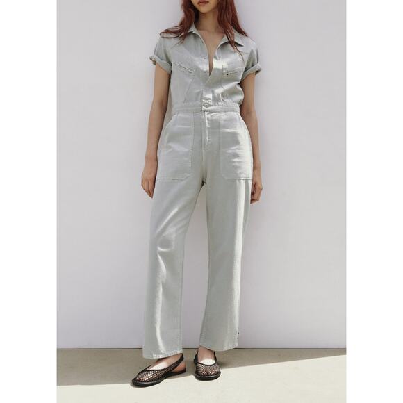 Faherty Blythe Denim Jumpsuit Organic Cotton Jean Romper Light Wash S A001619