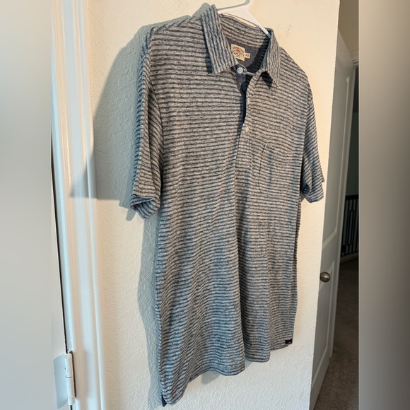Faherty Brand Indigo Polo Baypoint Stripe Gray Short Sleeve Mens Size Medium