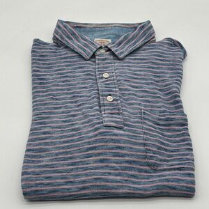Faherty Brand Men’s Polo Shirt Striped Natural Indigo Dyed Blue/Red Sz XL