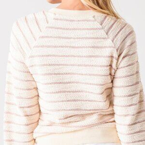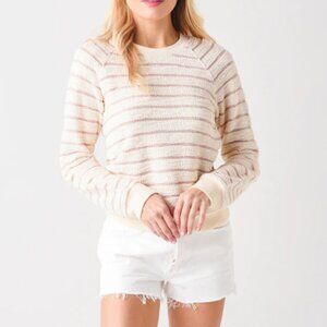 Faherty Brand Pacifica Terry Crew Sweatshirt, Cream and Dusty Rose, Size XLG