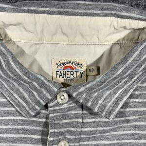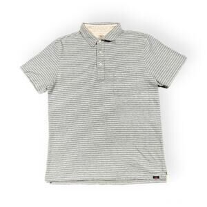 Faherty Brand Polo T Shirt Mens M Gray Striped Pocket Surf Cali Short Sleeve