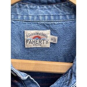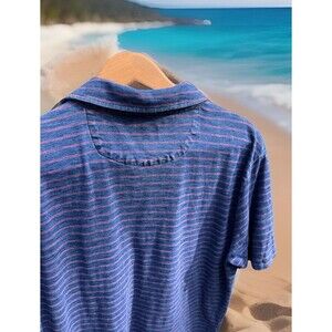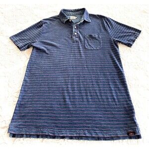 Faherty Brand SS Polo Shirt Indigo Dyed Cotton Blue Stripe Logo Mens Medium