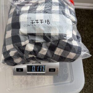 Pattern/Color: Navy blue and off-white buffalo plaid