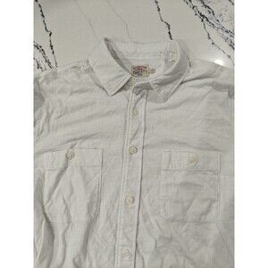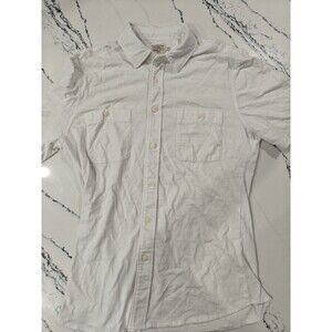 Faherty Brand Short Sleeve Button Up Shirt Size L Solid White Organic Cotton