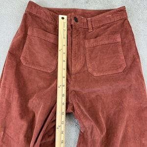 These Faherty pants showcase a classic boot cut silhouette in a rich brown corduroy, offering a timeless and versatile addition to your wardrobe. The high-waisted design and flared legs create a flattering fit, perfect for pairing with your favorite tops. Ideal for fall and winter, these pants bring a touch of retro charm to any outfit.