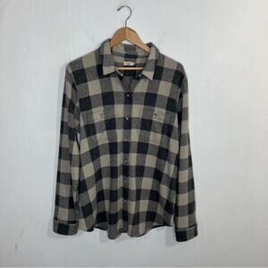 Faherty Buffalo Check Legend Shirt Tan Charcoal Button Front Flannel Size Large