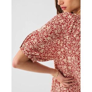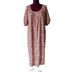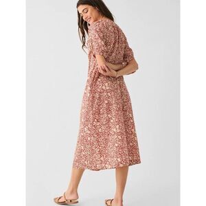 Faherty CARMEL DRESS TANDOORI SPICE MIDI size L Floral Ditsy Button Front Short Sleeve Cream Red