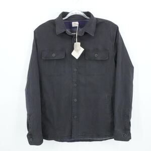 Faherty CPO Shirt Jacket Men's L Washed Black Canvas Blanket Lined Relaxed Fit