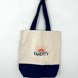 Faherty Canvas Lightweight Reusable Tote Bag Branded Cream Blue