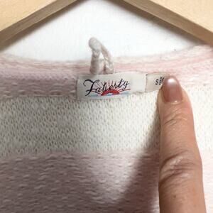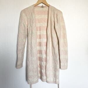 Faherty Cardigan Small Knit Tie Sweater Pink Stripe Cream Cashmere Cotton