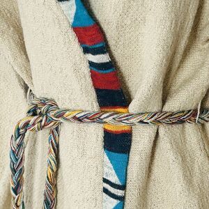 Faherty Cardigan Sweater M/L Beige Native Designed Crow Stripes Fringe Tie