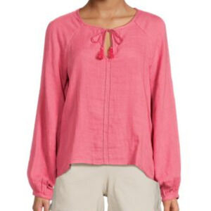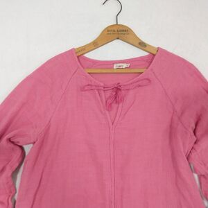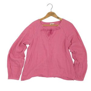 Faherty Celina Puff Sleeve Top Size M Pink Gauzy Peasant Blouse Organic Cotton