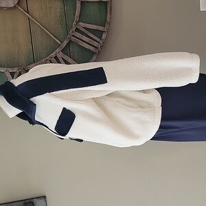 Faherty Cortina High pile fleece plush fleece and velvety corduroy trim two front flap pockets and side pockets quarter zip used pictures taken of approx measurements Cozy beach nights camping bonfire layer nautical preppy