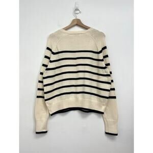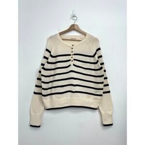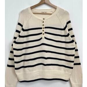 Faherty Cozy Cotton Henley Sweater Coastal Preppy Natural Navy Stripe - Medium