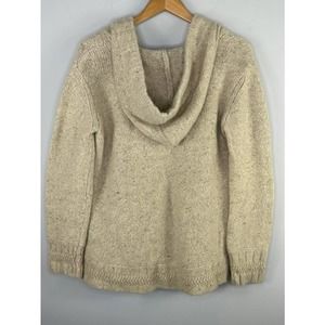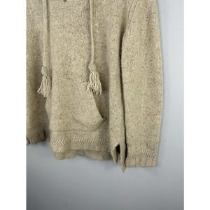 Cozy hooded sweater with front pocket. Soft knit texture. Perfect for layering.
