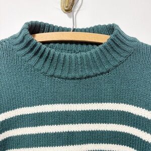 Faherty Cuddle Stripe Crew Sweater in Evergreen Stripes Size XS Oversized Preppy