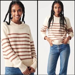 Faherty Cuddle Striped Crew Sweater Chai Stripe Cream Brown Knit Medium Rare