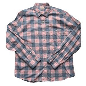 Faherty Doublecloth Seaview Button Down Shirt 2XL Rose/Blue Plaid Long Sleeve