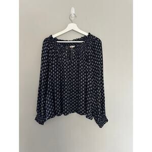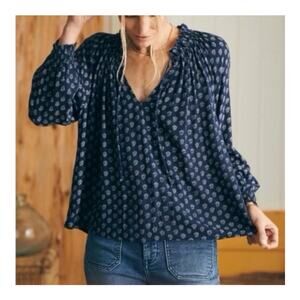 Faherty Emery Lotus Flower Navy Blue Blouse size Small