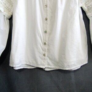 Faherty Enna women's white 100% organic cotton lined boho peasant poet button front top with lace insets.