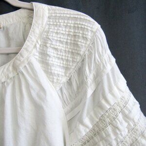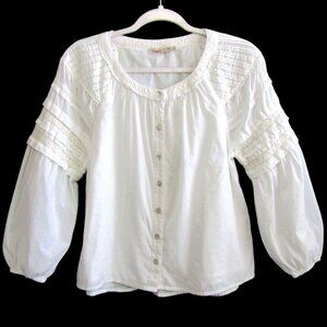 Faherty Enna White Lace Inset Organic Cotton Top Sz XS Balloon Sleeve Poet Boho