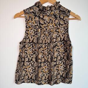 Faherty Faith Ruffle Sleeveless Blouse Small Neutral Popover Top Paisley Floral