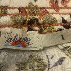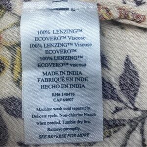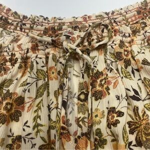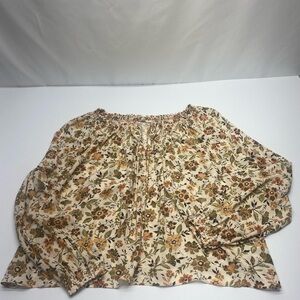 Faherty Floral Blouse in Cream and Brown Women’s LG Tie Neck Elastic at Wrist